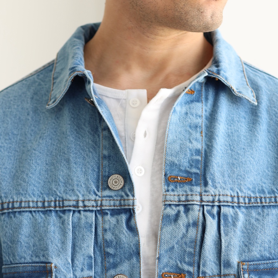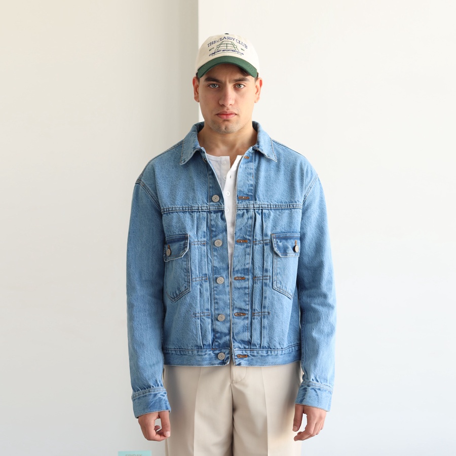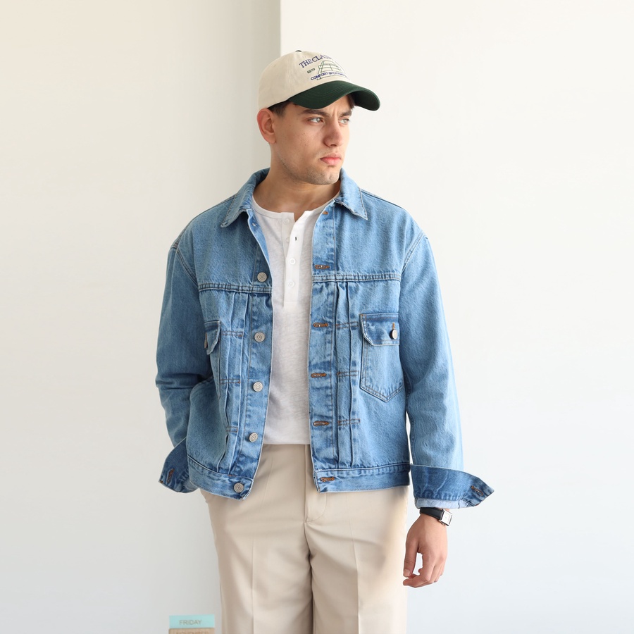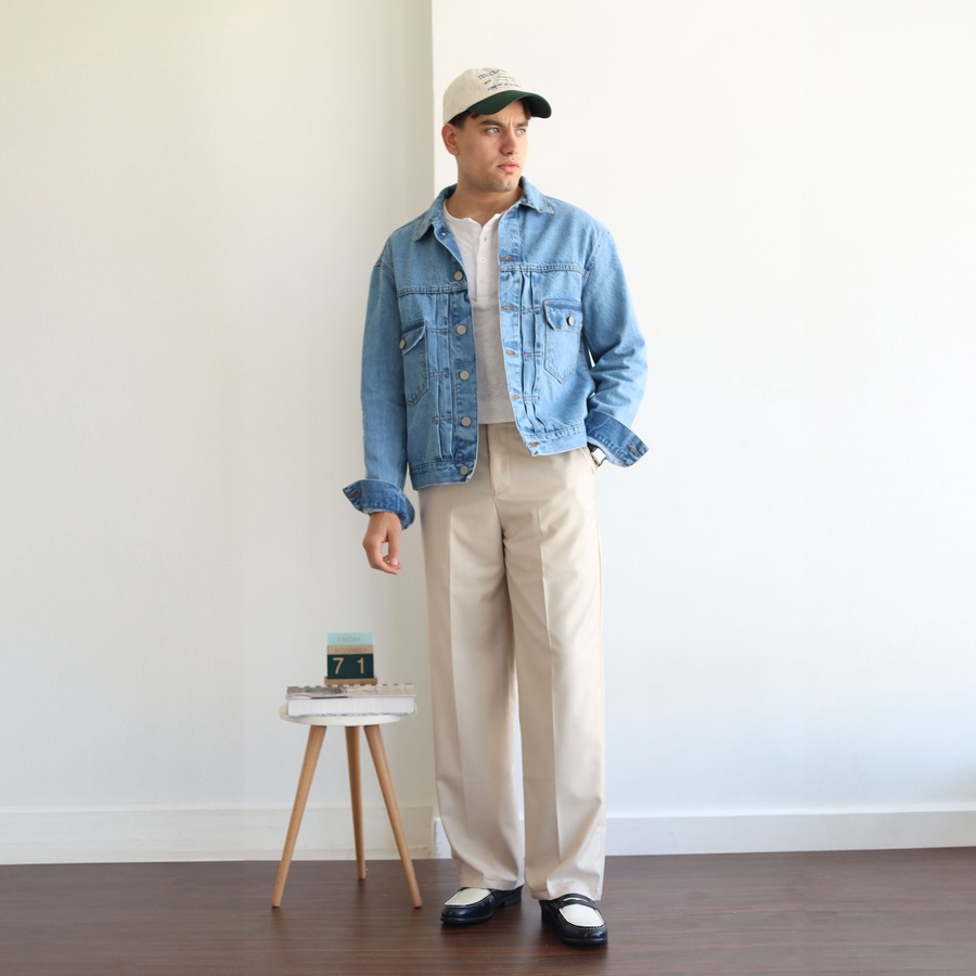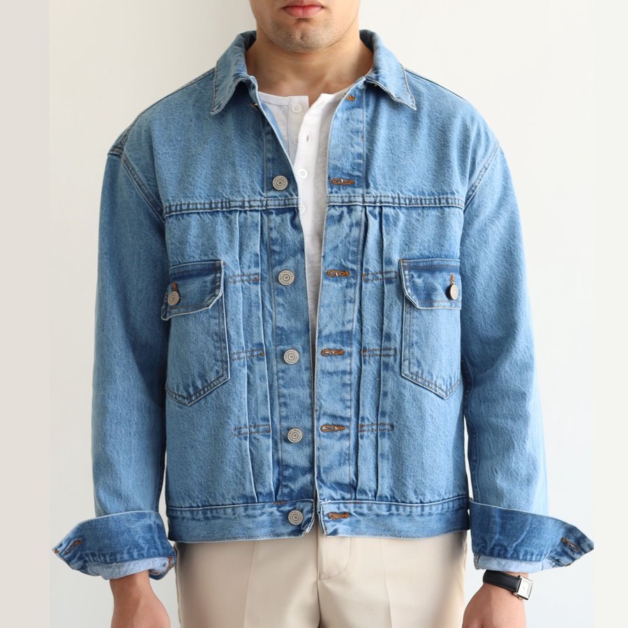 Crafted from premium, heavy-duty denim, this jacket combines vintage aesthetics with a modern Fit. Featuring the classic double-pleated front and dual flap pockets, it’s designed for those who appreciate timeless style and durability.