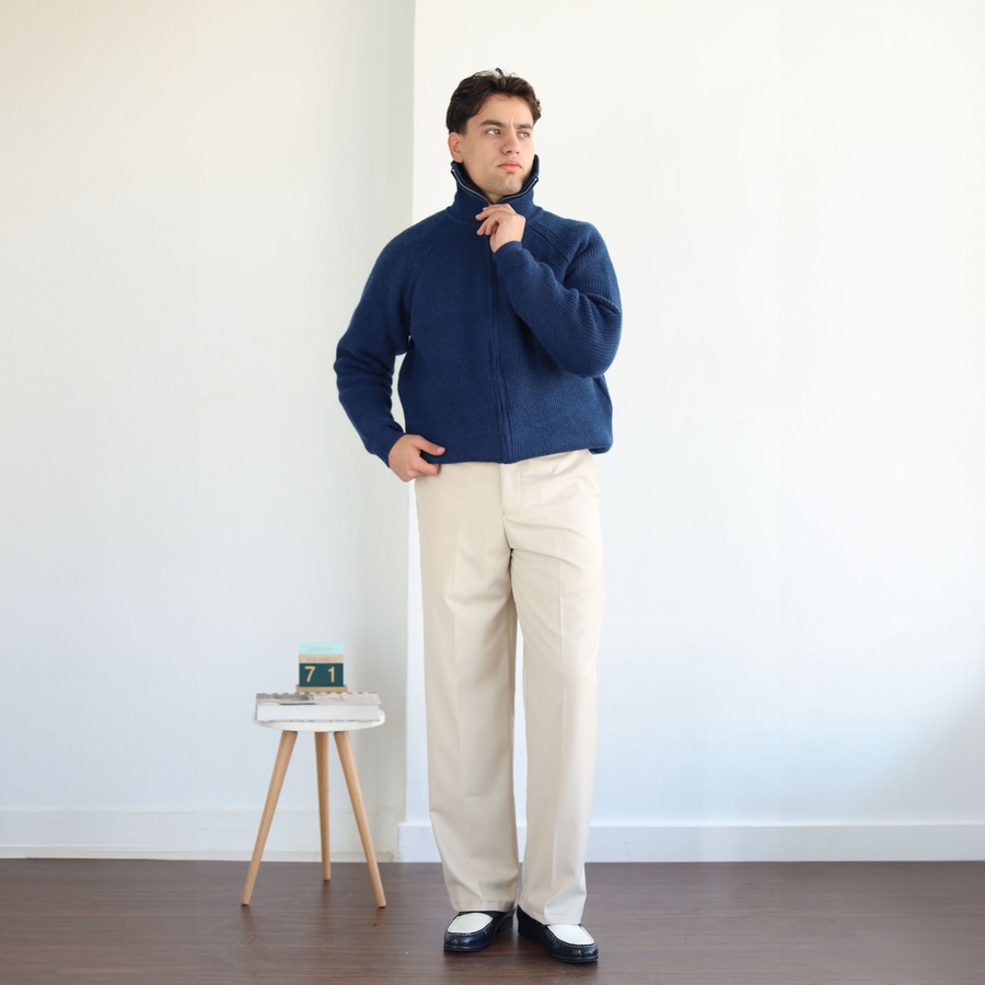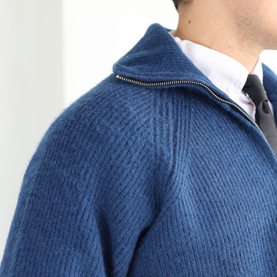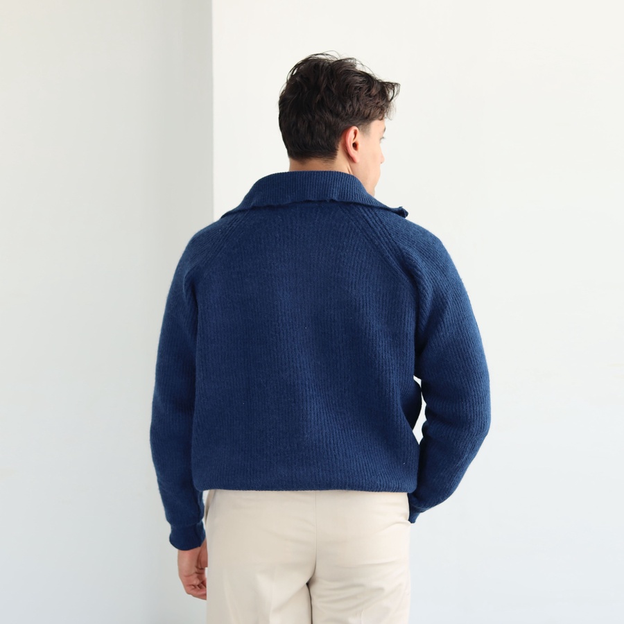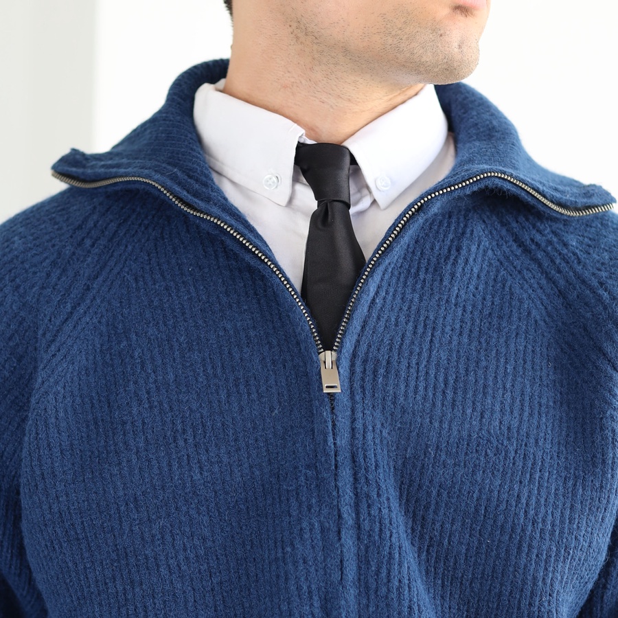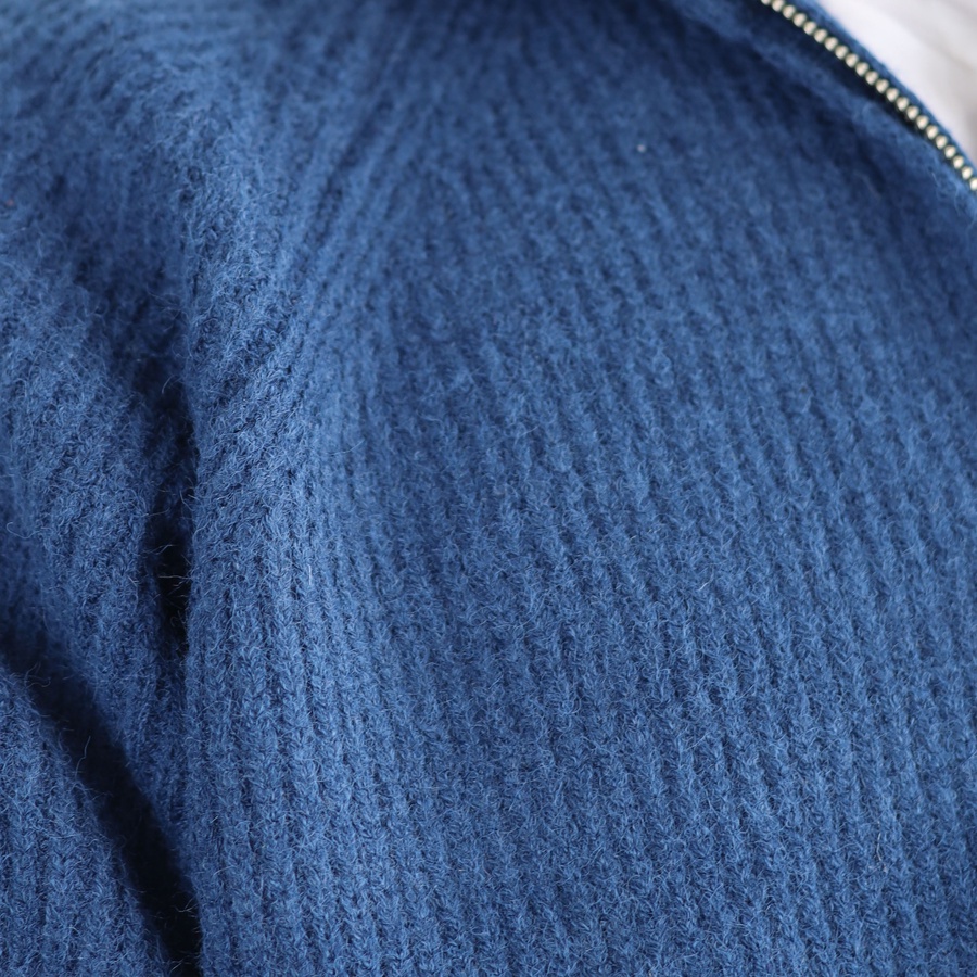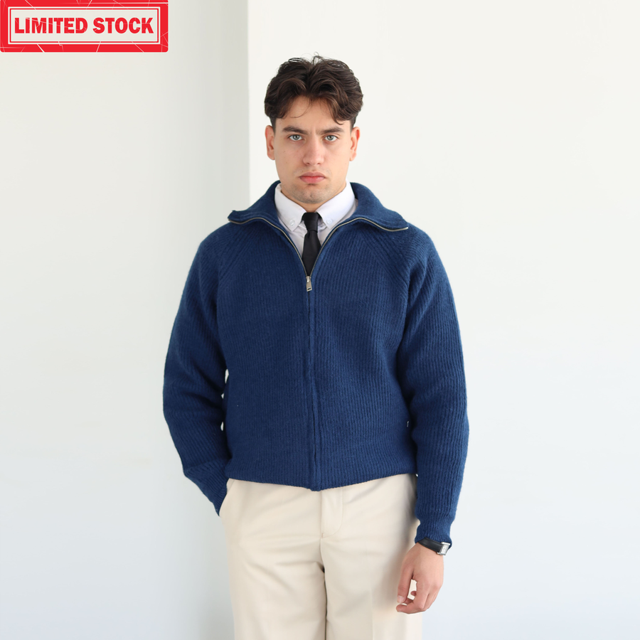 Elevate your cold-weather outfits with this full-zip textured knit jacket in a rich deep blue shade. Designed with a stand-up collar and ribbed texture, it delivers both warmth and style in equal measure.