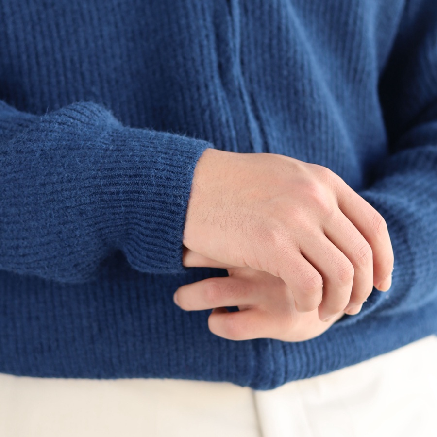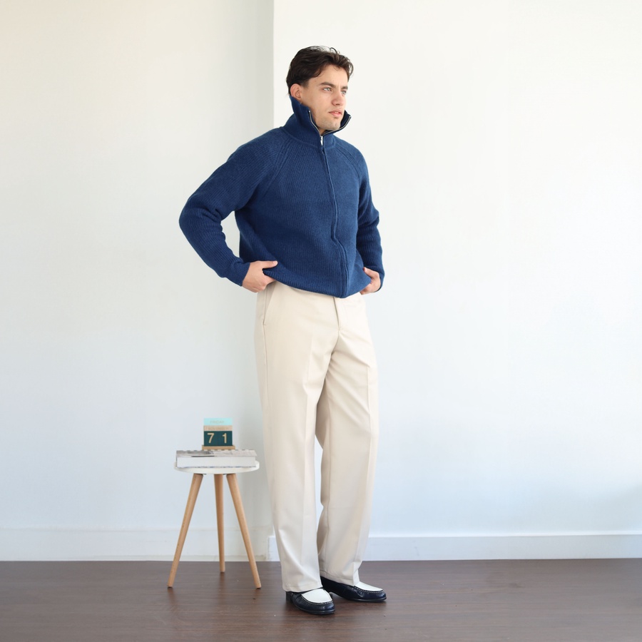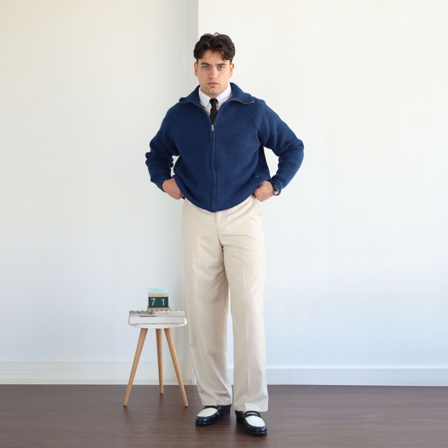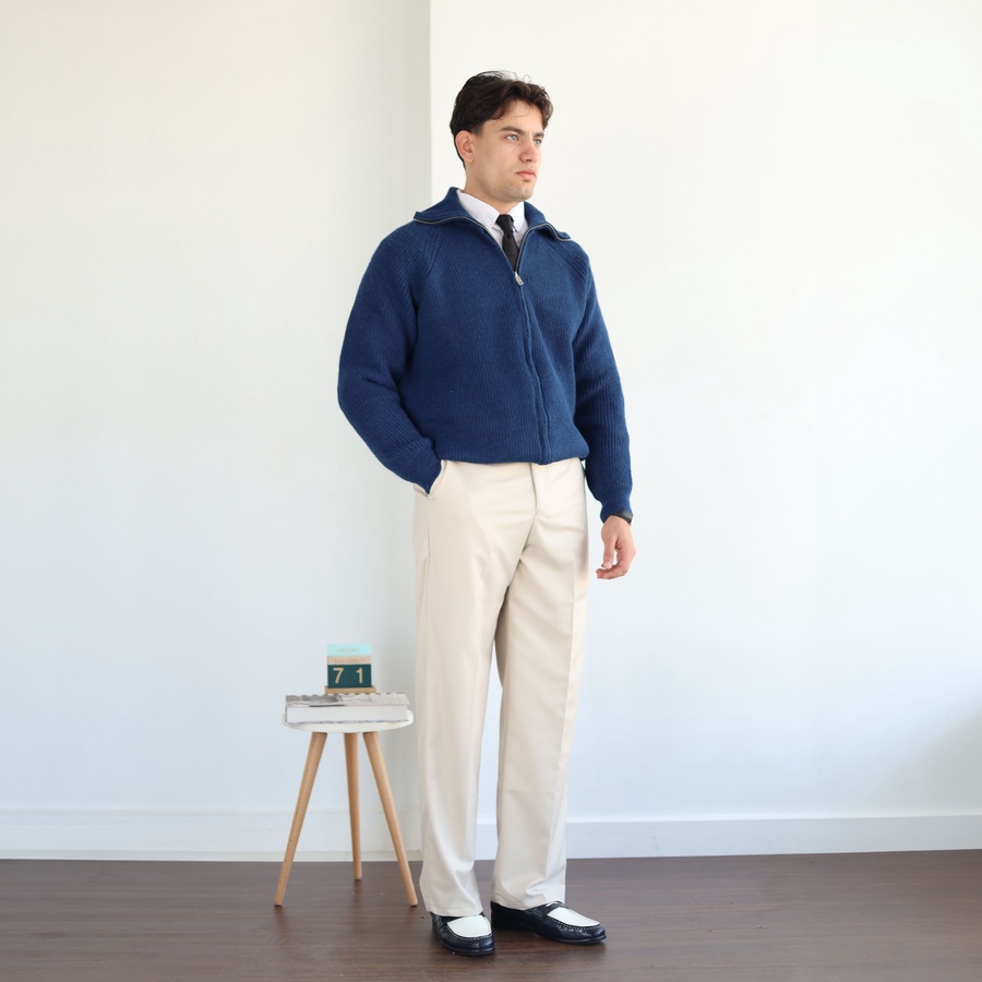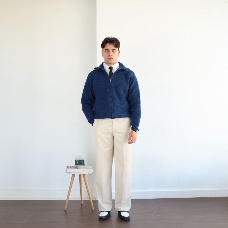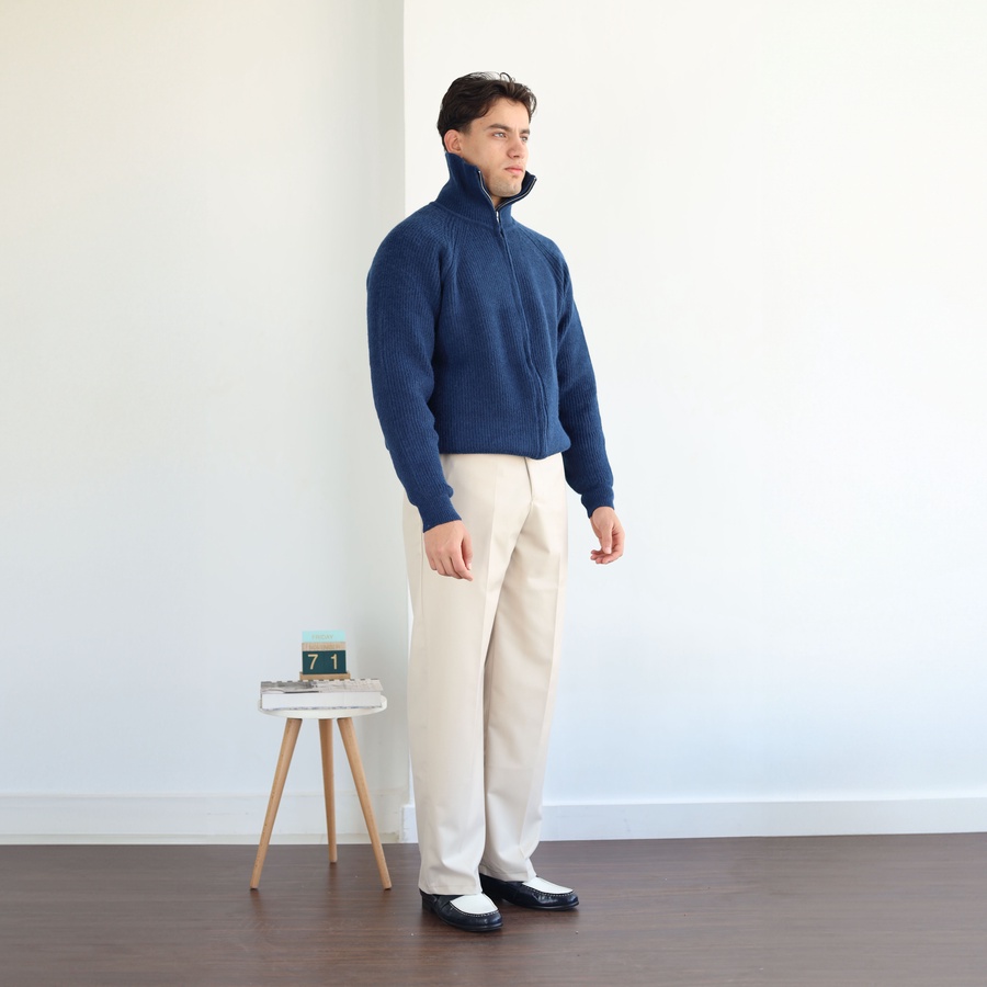 Elevate your cold-weather outfits with this full-zip textured knit jacket in a rich deep blue shade. Designed with a stand-up collar and ribbed texture, it delivers both warmth and style in equal measure.