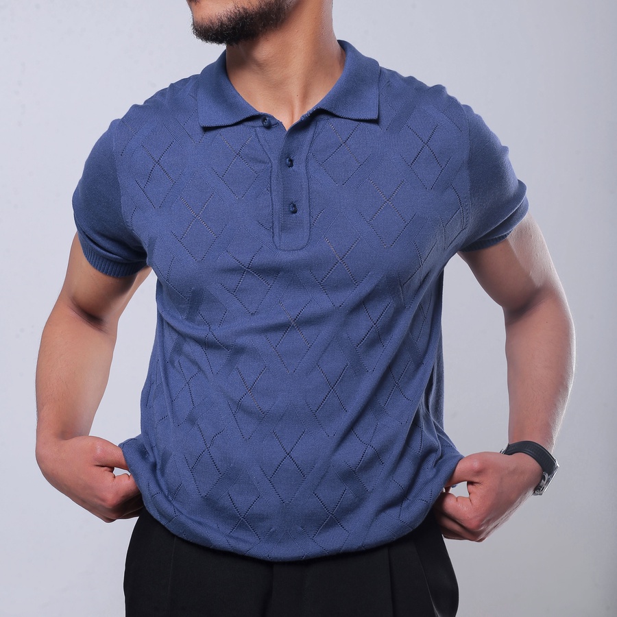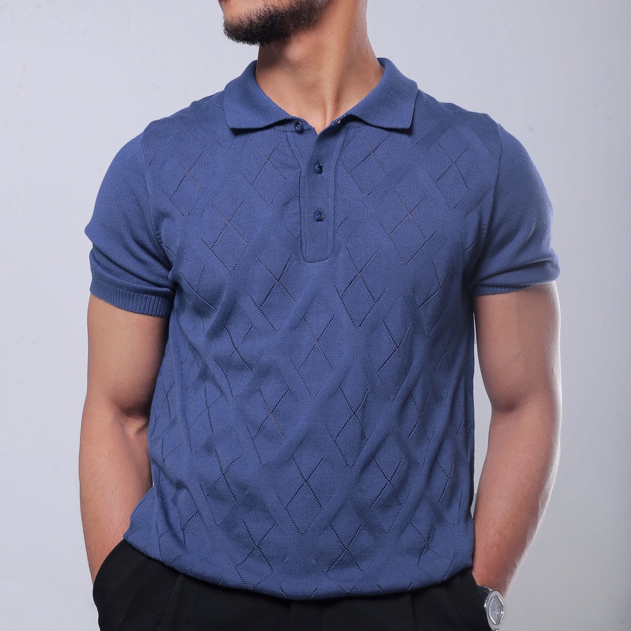 Stay sharp with this navy Diamond polo shirt. Featuring a timeless color and fine knit texture, it's the perfect balance between smart and chill vibes.