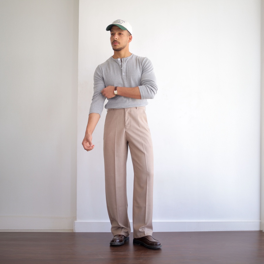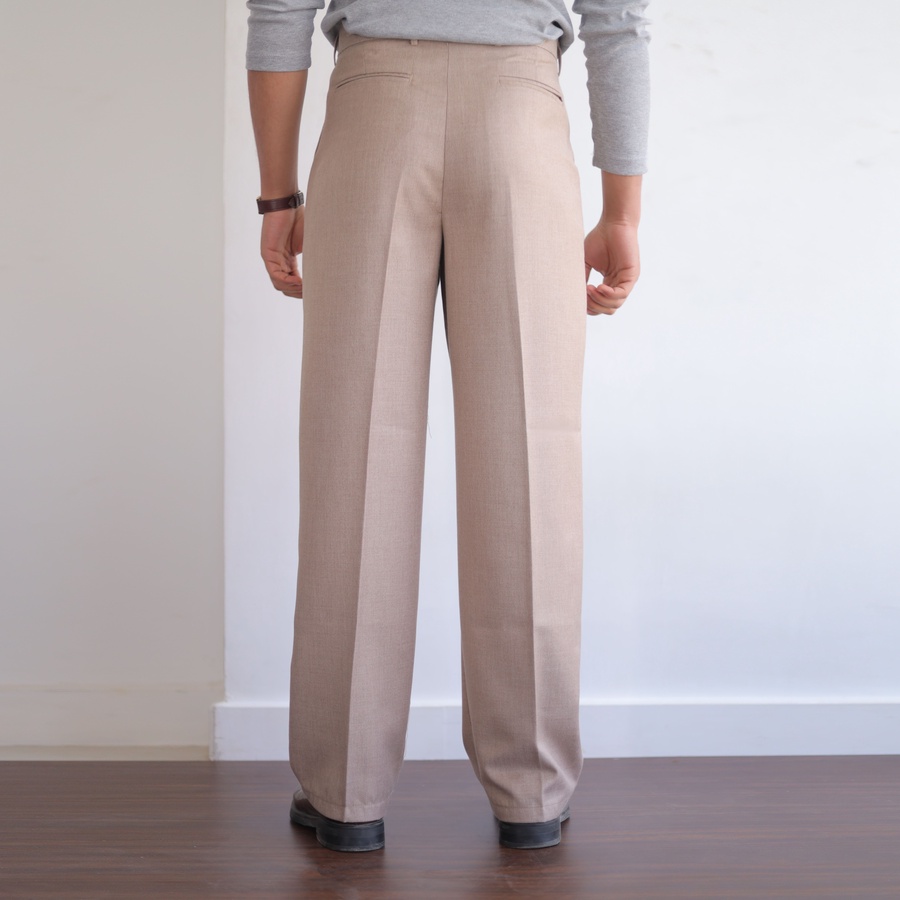 Tailored Relaxed Fit Pants. Designed with a clean, structured silhouette and a refined Relaxed Fit from top to bottom, featuring front pleats and a slightly loose waistband, perfect for formal occasions, smart-casual styling, or a classic "old money" aesthetic.