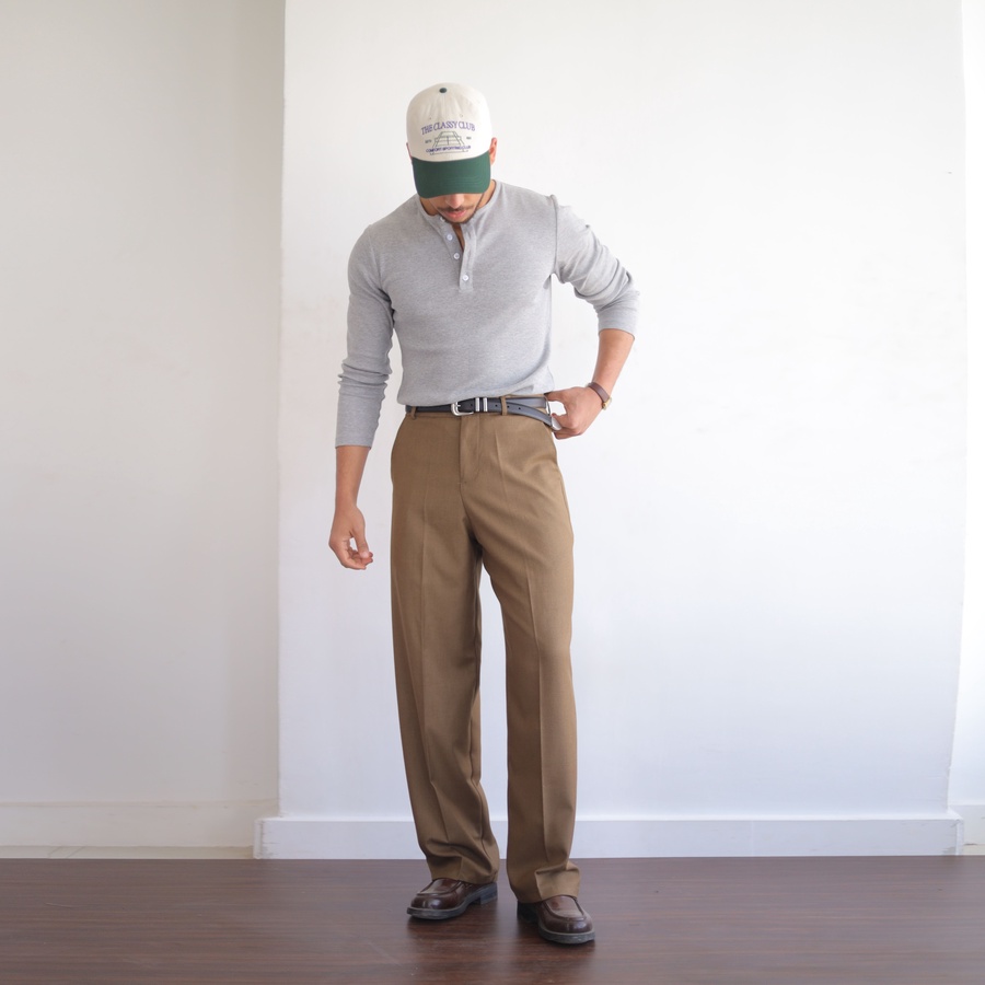 Tailored Relaxed Fit Pants. Designed with a clean, structured silhouette and a refined Relaxed Fit from top to bottom, featuring front pleats and a slightly loose waistband, perfect for formal occasions, smart-casual styling, or a classic "old money" aesthetic.