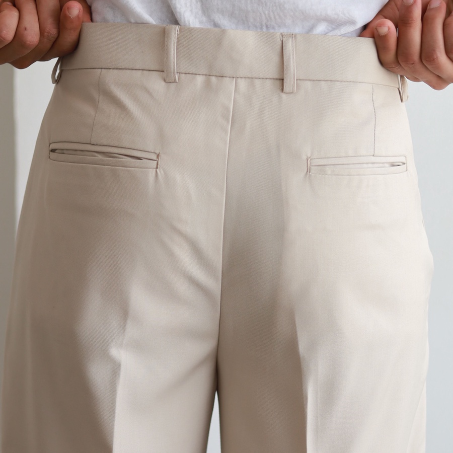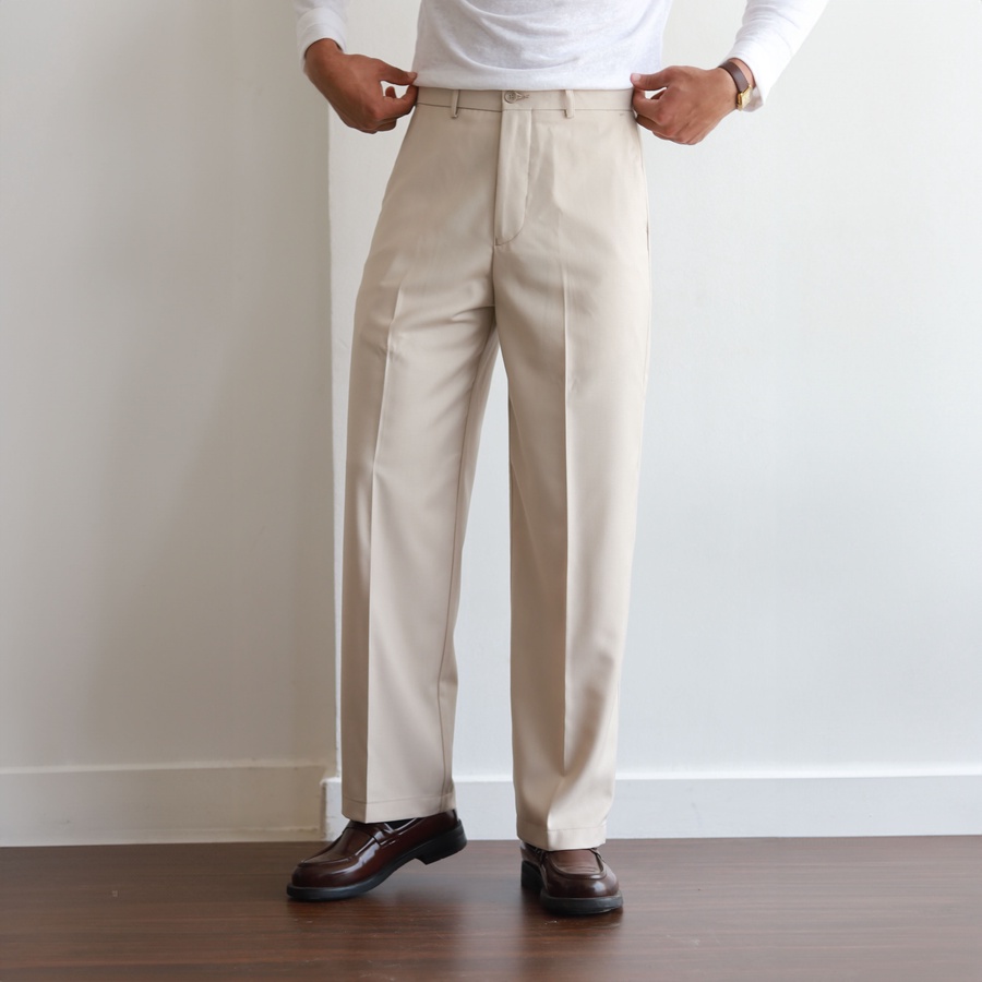 Tailored Relaxed Fit Pants. Designed with a clean, structured silhouette and a refined Relaxed Fit from top to bottom, featuring front pleats and a slightly loose waistband, perfect for formal occasions, smart-casual styling, or a classic "old money" aesthetic.