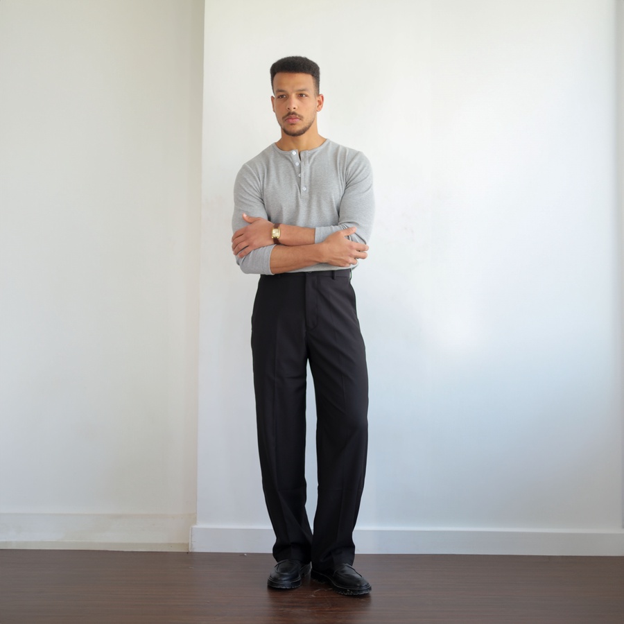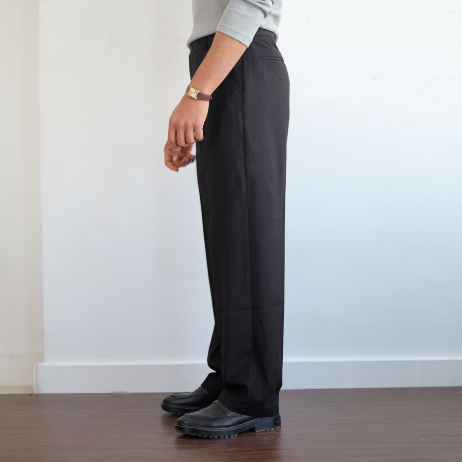 Tailored Relaxed Fit Pants. Designed with a clean, structured silhouette and a refined Relaxed Fit from top to bottom, featuring front pleats and a slightly loose waistband, perfect for formal occasions, smart-casual styling, or a classic "old money" aesthetic.