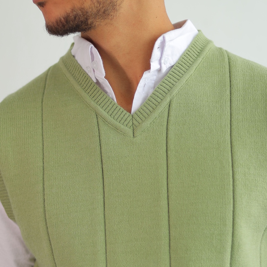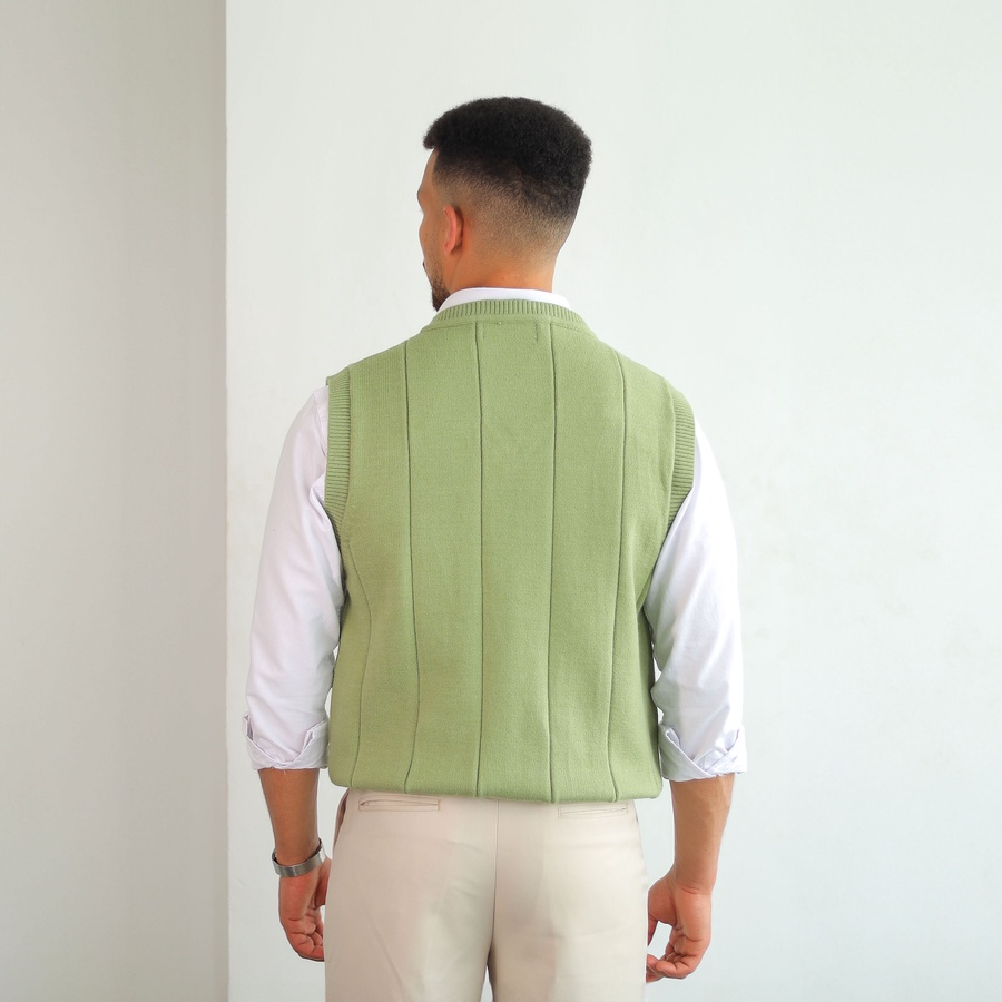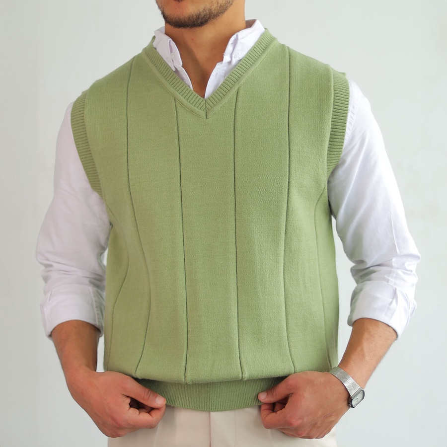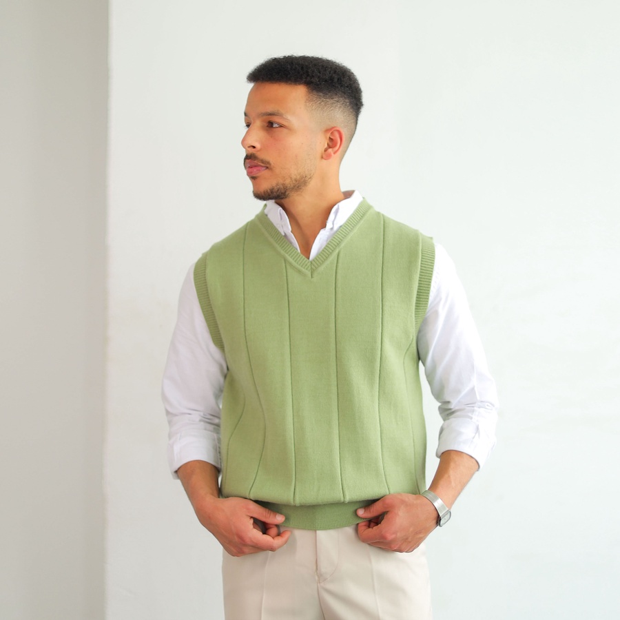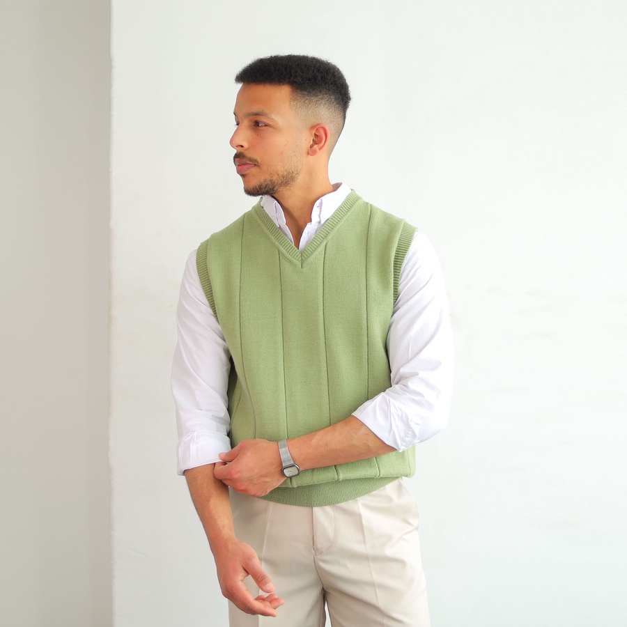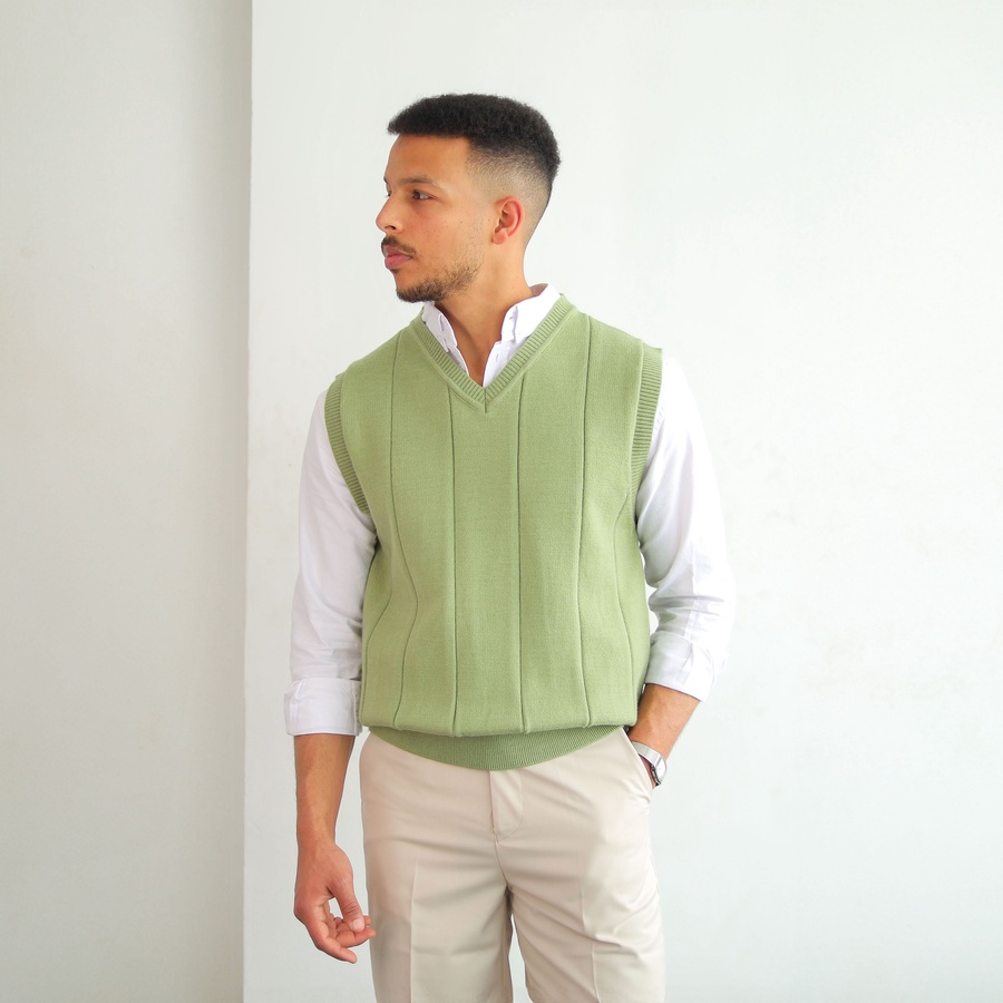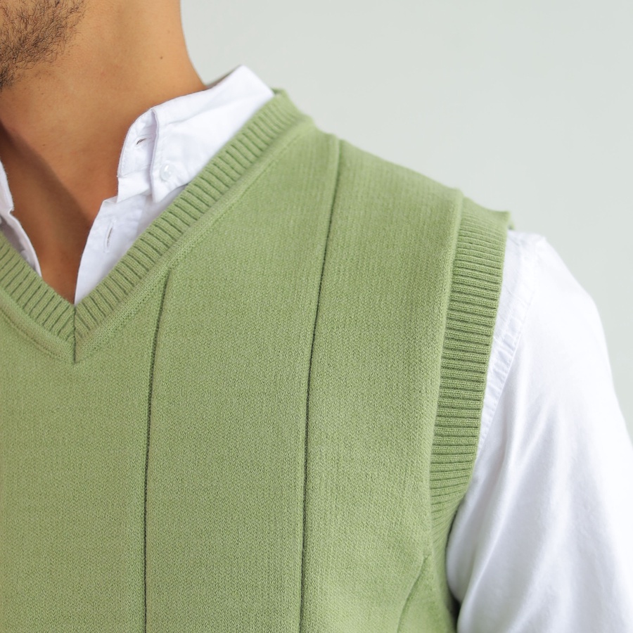 Soft ribbed knit vest with a clean V-neckline and structured vertical lines. Lightweight and easy to layer for a timeless smart look.